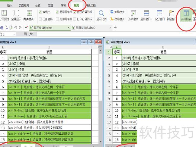 打开所需表格,点击视图-并排比较,所示,工作簿1与工作簿2将并列显示,便于内容对比。