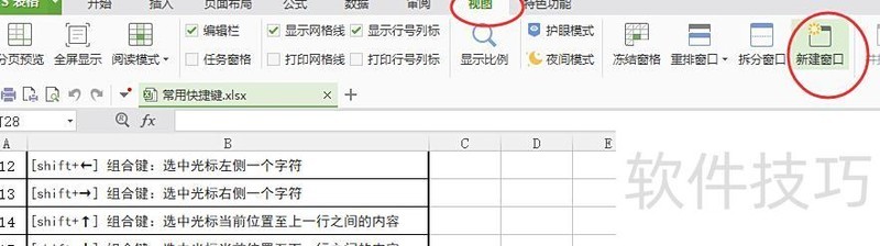打开所需表格,点击视图中的新建窗口。