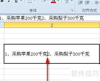 打开Excel表格,用空格分隔单元格内容,然后选中该单元格,所示。