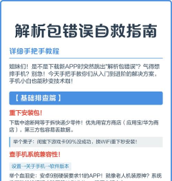 手机下载应用时,最烦人的事,莫过于解析包出错,安装失败,让人抓狂,今天,我们就来聊聊,解析包出现问题怎么办,其实,解决方法并不难,掌握几个技巧,就能轻松搞定,让你不再为安装应用而烦恼。