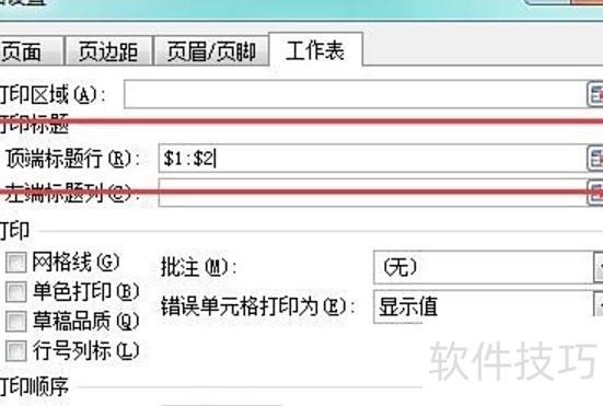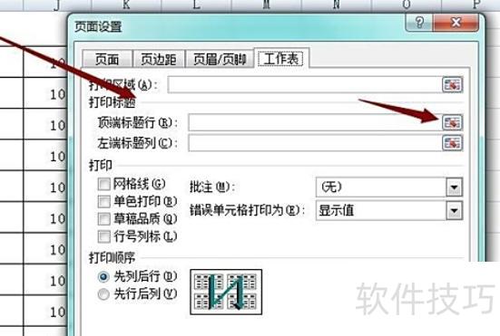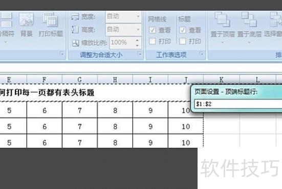 点击顶端标题行后进入新页面,选择需打印的标题行,所示。