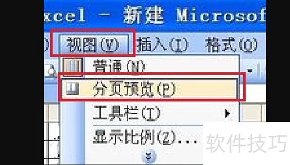 进入视图选项卡,点击分页预览。