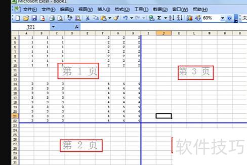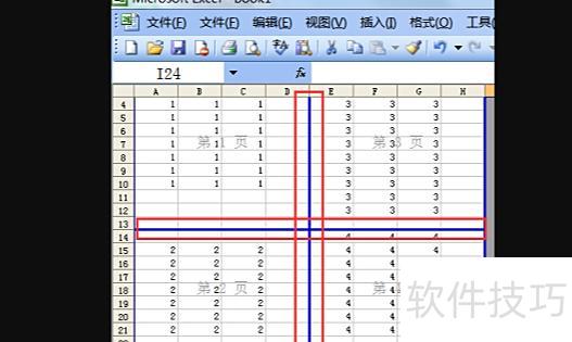 拖动页面分割线调整表格尺寸,可实现Excel中分页打印的设置。