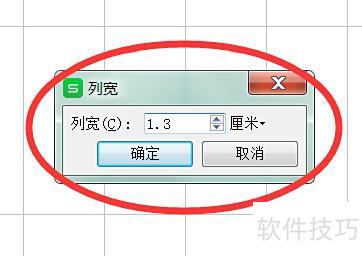 接着点击列宽,将单位设为厘米,输入数值1.3后确认。