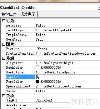 右键点击复选框,选择属性选项。