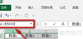 在程序左上角名称框中输入A1:E5000,按回车键确认。