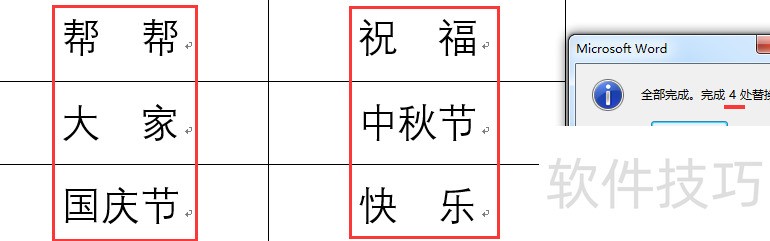 大家看,整齐的对齐效果。四字词同样用格式刷批量处理,快速完成。