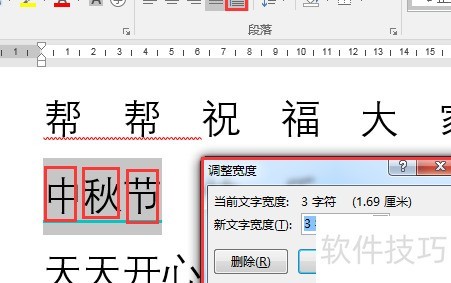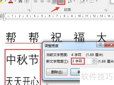对于四字成员需对齐时,可借助字符宽度实现。选中三字项,点击调整宽度,查看当前为3个字符宽即可。