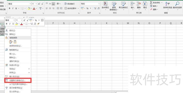 选中目标单元格,右键点击并选择设置单元格格式选项。