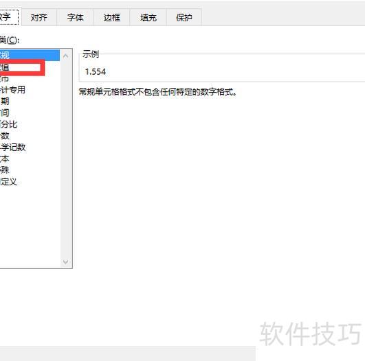 在选项卡里找到数字或数值分类。
