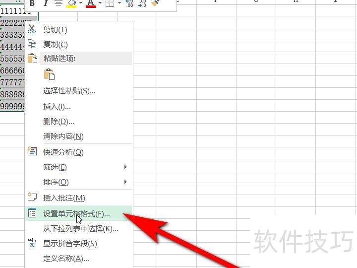 先选中需转换为数值的数据或整列,再右键点击,从弹出菜单中选择设置单元格格式工具。