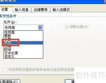 点击设置后,在允许栏右侧下拉箭头处选择所需序列。