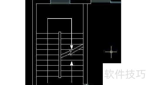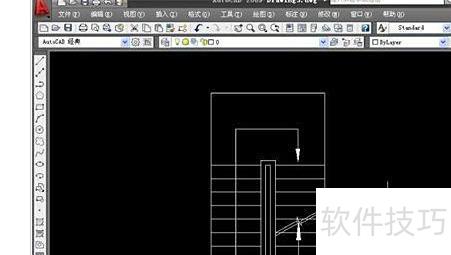 点击绘图工具栏中的直线按钮,开启正交模式,绘制楼梯墙体与扶手,完成后进入下一步操作。