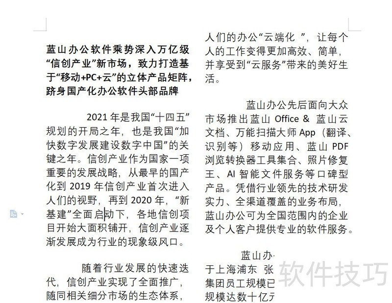 以上便是Word取消分栏左右排版的操作方法,是不是很简单?如有疑问,欢迎关注蓝山办公,助你工作更高效、更轻松!