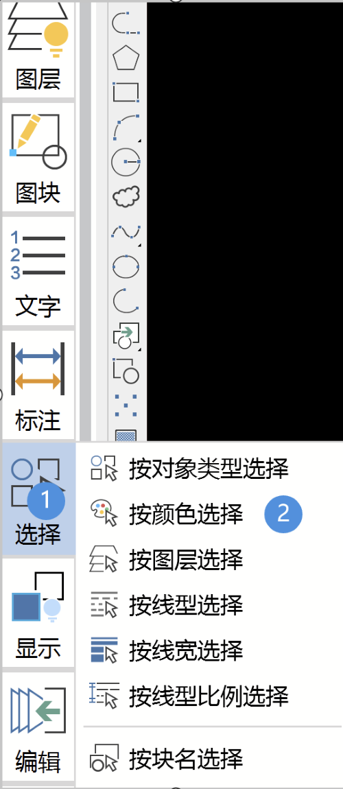 点击左侧工具箱【选择-按颜色选择】,根据提示选择对象,即可将与该对象相同颜色的对象全部选中。