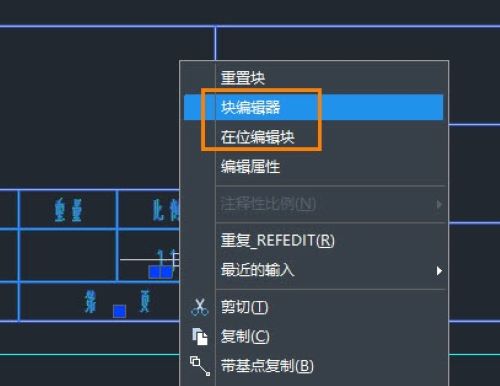 选中属性块后,鼠标右键菜单中选择【块编辑器】或【在位编辑块】进入编辑。