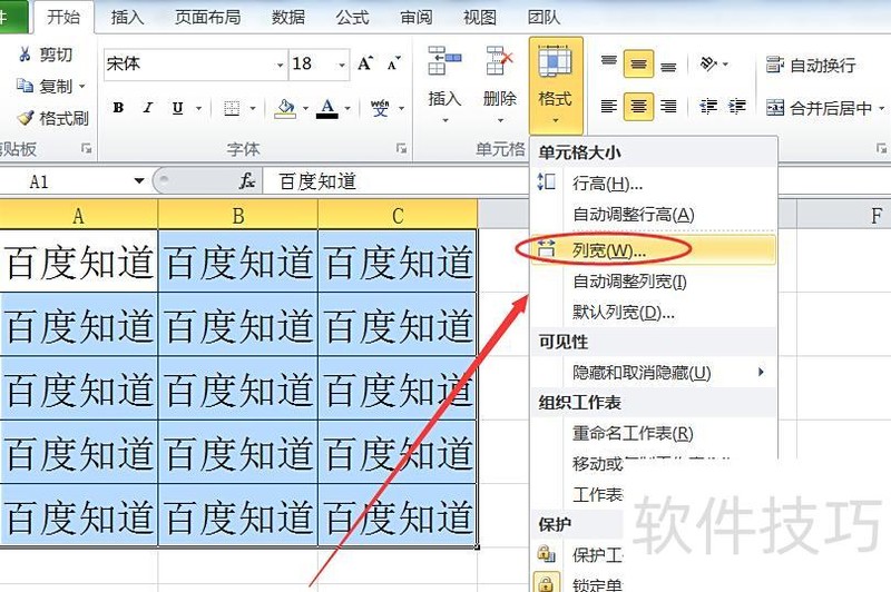 步骤同1、2,在格式下拉菜单中选择列宽选项。