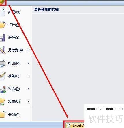 点击Excel左上角的Office图标,再选择Excel选项进入设置界面。