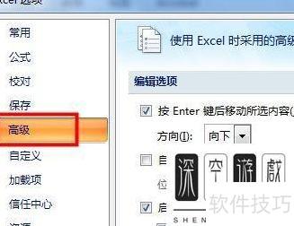 在Excel选项里点击高级设置。