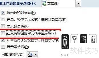 取消勾选在零值单元格中显示零,点击确定。