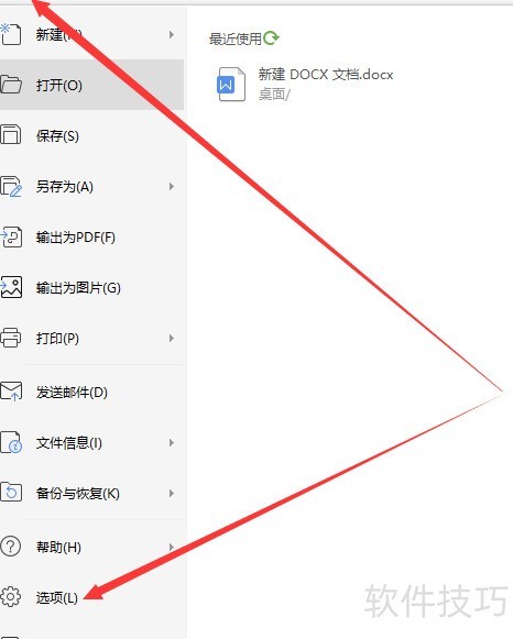 打开文档,点击左上角文件,选择弹出页面中的选项按钮。