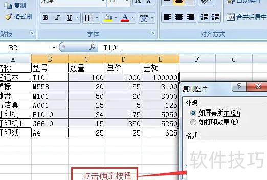 点击开始选项卡中粘贴按钮下的下拉箭头,选择以图片格式中的复制为图片。