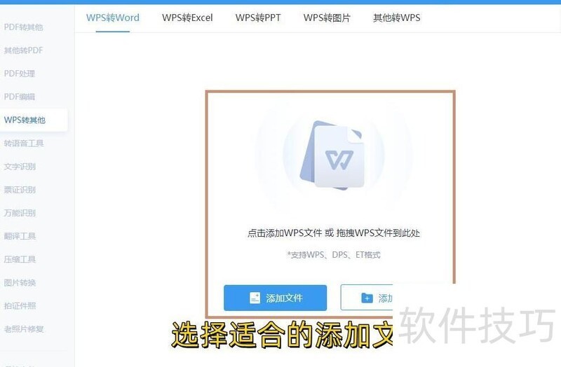 可点击上传需转换的WPS文档,也可直接拖拽至软件界面完成导入操作。