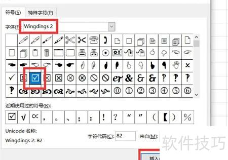 选中目标单元格,将字体设置为Wingdings 2即可输入符号。