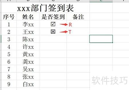 在预设单元格中输入大写可快速填入带方框的勾选符号,输入大写则填入带方框的叉号。