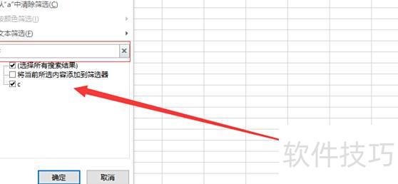 当筛选时因分组过多难以找到目标数据,可在自定义栏中输入关键字,例如输入c,系统将自动显示所有包含c的选项,便于快速定位,从而高效完成数据筛选操作。
