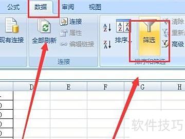 在标题栏找到筛选图标(漏斗标志),点击后,表格第一行各列右侧将出现下拉箭头,所示。