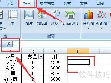 选择空白单元格,点击插入菜单,选函数命令,所示。