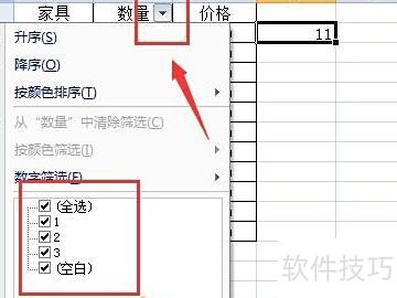 点击筛选序列的下拉箭头,括号内将显示对应数量。