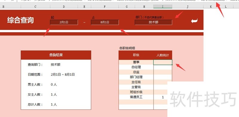右侧日历自动更新,实时显示生日提醒人数,左侧同步统计数据,操作简便高效!通过综合查询表一键筛选,输入时间范围并选择部门(默认全选),系统自动通过函数呈现员工生日信息,直观清晰,方便实用,助你轻松掌握。