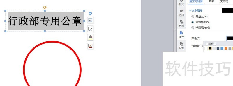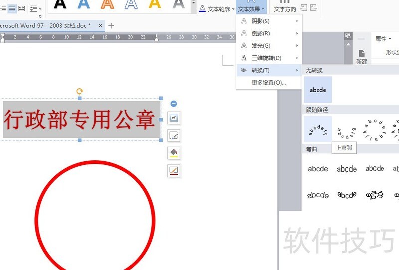 绘制公章轮廓后,插入艺术字并选择第一个黑色样式。