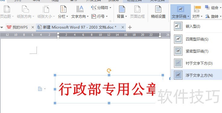 将文本框字体设为红色,选中文本框后,在页面布局中设置文字环绕方式为浮于文字上方。