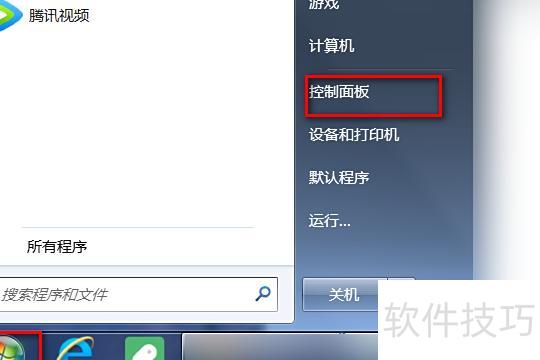 在桌面点击开始,进入控制面板。