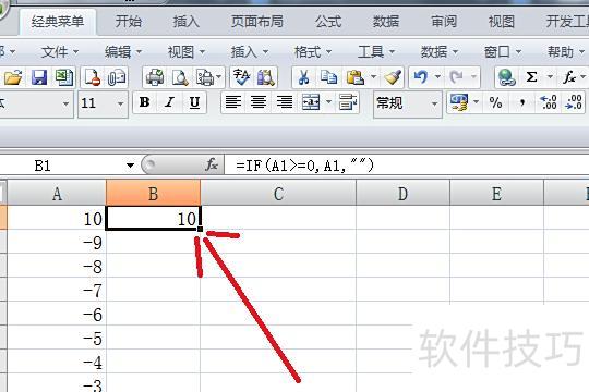 在B1单元格输入公式:=IF(A1>0,A1,),按回车确认。