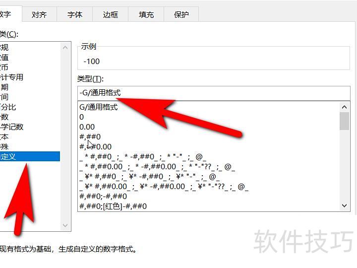 在设置单元格格式中选择数字选项,点击自定义,于类型中的G/通用格式前添加负号-,最后点击确定即可完成设置。