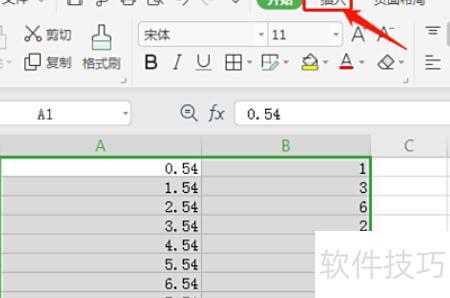 输入数据后全选内容,接着在工具栏中点击插入选项。