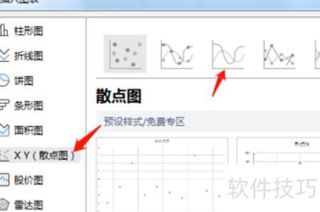 选中后,点击第二个带平滑线和数据标记的散点图,选择心仪样式,再点击插入。