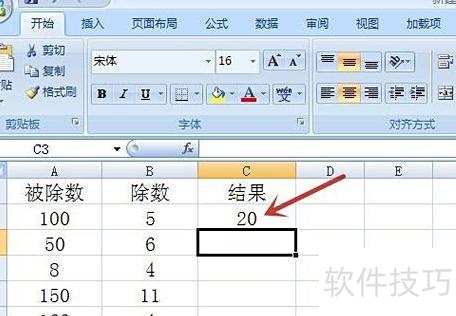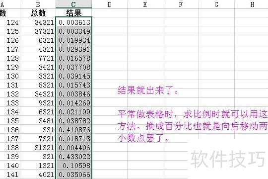 按下键,即可得出首个商值,所示。随后可快速计算出C列其余各单元格的商。