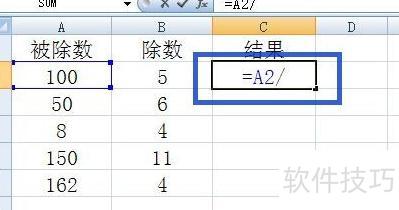 在C列输入英文斜杠/,即代表除号(÷)的运算符号。
