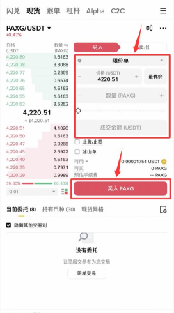 现在可以开始交易了,找到交易对,比如BTC/USDT,意思是,用USDT买比特币,输入你想购买的数量,或者花费的金额,市价单会立即成交,限价单则等你设置的价格。