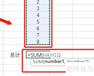 选定求和区域后,在公式编辑栏中输入对应的函数公式即可。