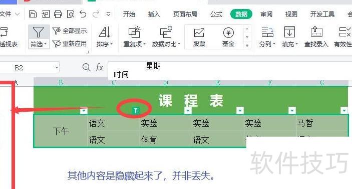 点击确定后,仅显示筛选出的数据,其余内容暂时隐藏。筛选结果旁会显示图钉图标,所示,数据并未丢失,只是被折叠隐藏。