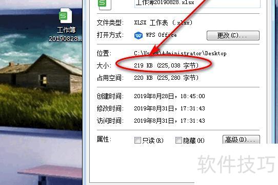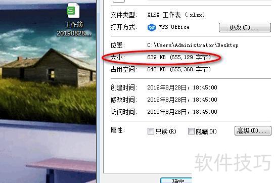 右键查看文件属性,显示其大小已压缩至最小。