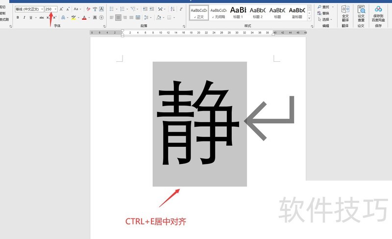 用鼠标框选文字后,按Ctrl+E即可居中对齐。