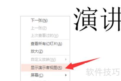 播放时右键点击界面,选择显示演讲者视图即可,操作所示。