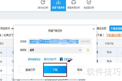 点击分析下载,在弹出的选项中选择查看下载答卷即可。
